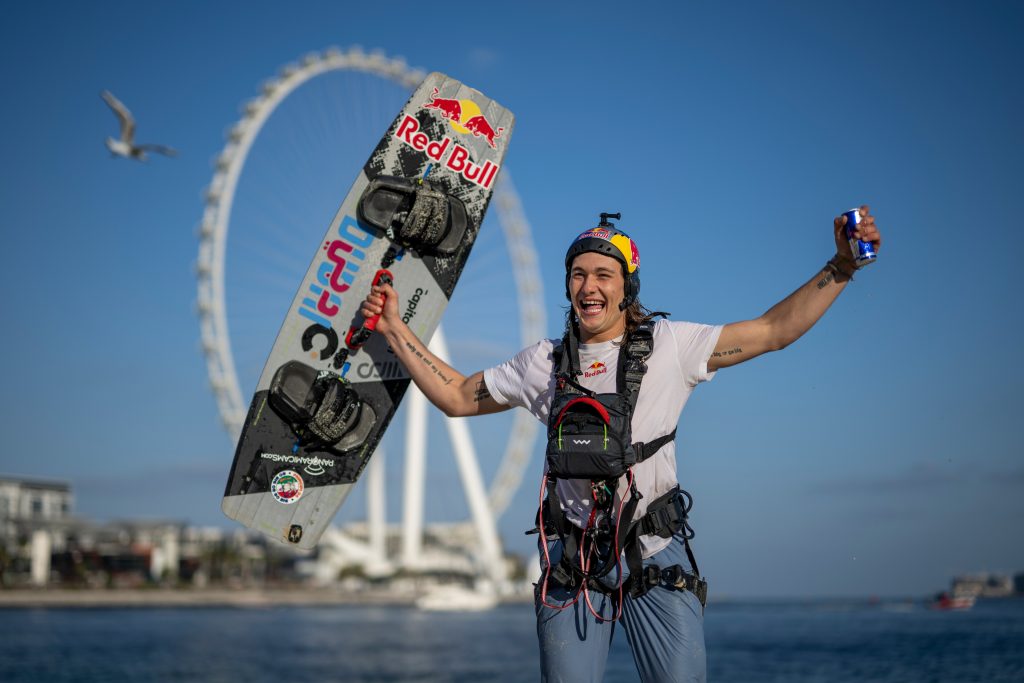 Two-time Red Bull King of the Air champion Andrea Principi set two world records on Friday when he completed the highest drop from a structure with a kite and the most “Around the World” loops with six from the top of Ain Dubai – the world’s tallest observation wheel at 250 metres. Here is all you need to know: